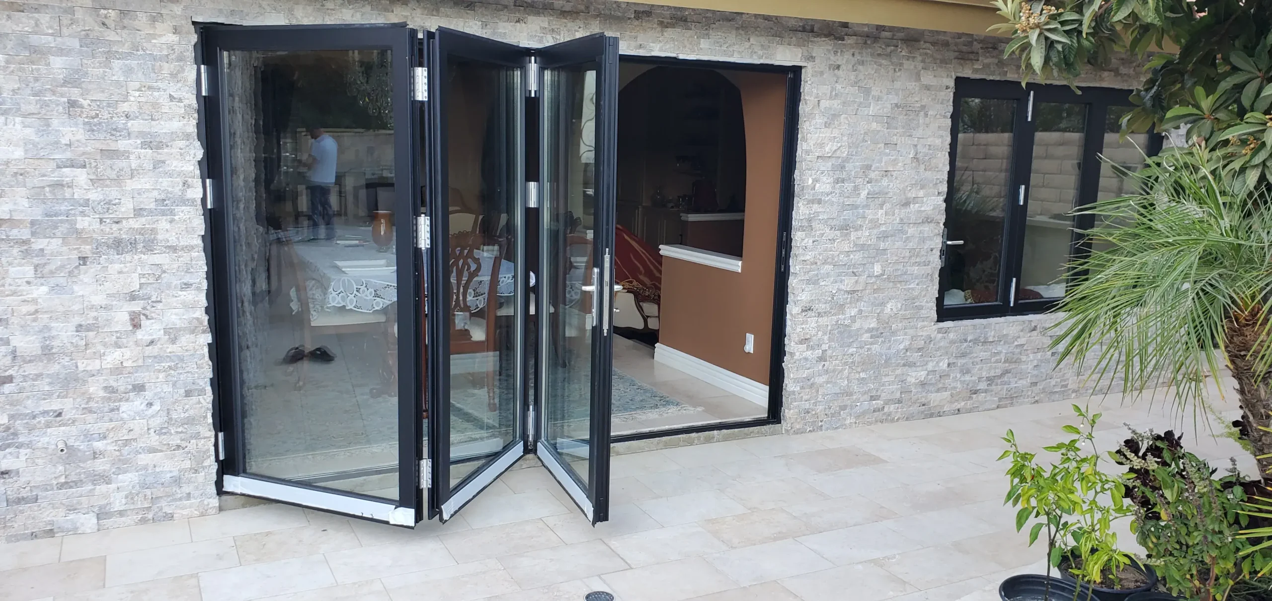 Our bifold doors range from 6 feet up to 30 feet door configurations in standard opening sizes. Each panel ranges in size from 26 inches up to 50 inches. We have a variety of panels that fold to the left or right, opening either out-swing or in-swing. In addition, one door can be stationery and act as a single door, making this perfect for cold or hot days. Our doors meet the latest building standard code (title 24) for all states regarding safety and energy.